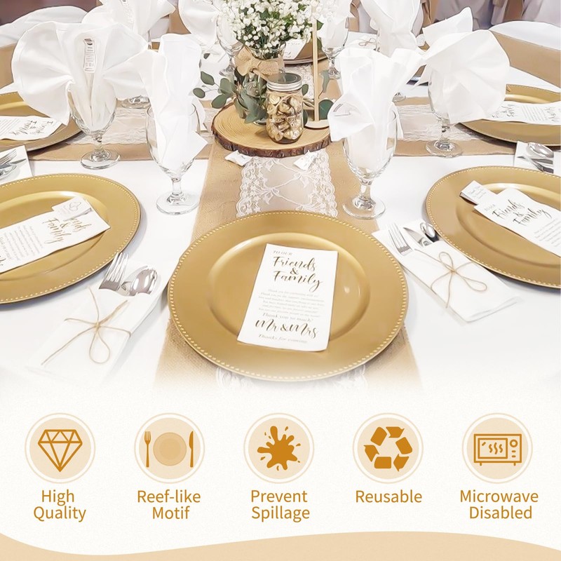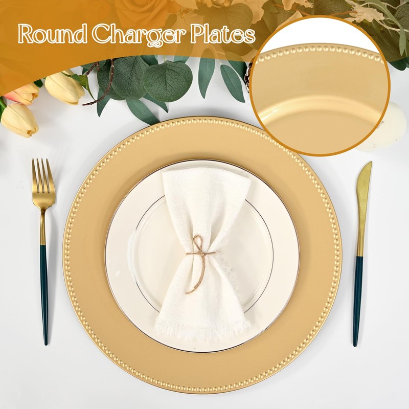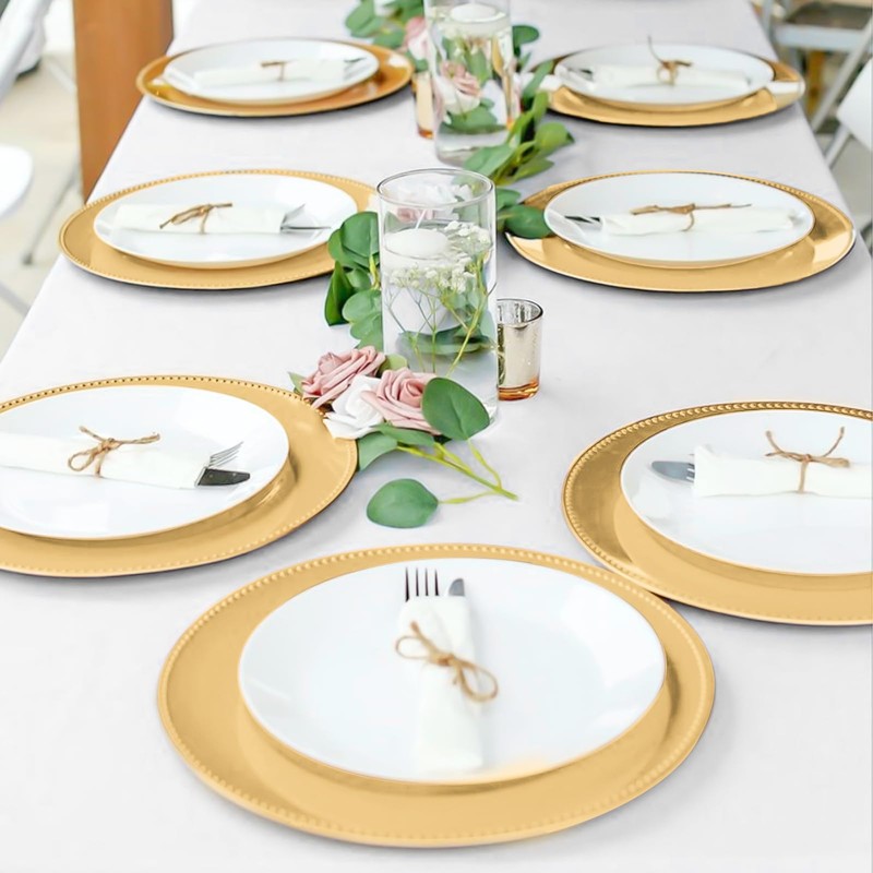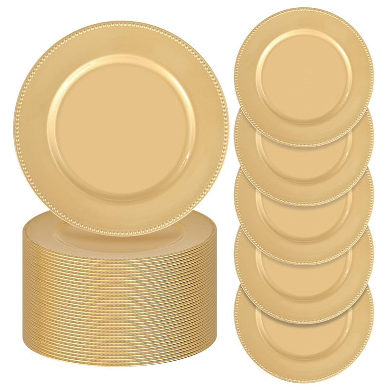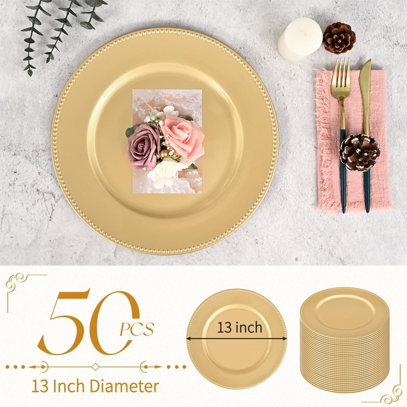 - Package Include: You will receive a set of 50 charger plates, each with a diameter of 13 inches/33cm.Sufficient to meet your extensive usage, replacement, and sharing needs. The inner edge of the charger plates features an elegant round bead shape, enhancing your user experience with a unique exterior design