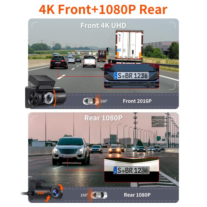 - 【60FPS Ultra HD Recording】The FANINSO 2-channel dash cam supports 4K at 30FPS as well as 2.5K at 60FPS recording. In 2.5K mode, the front camera can record at a high-definition and high frame rate of 60FPS, providing clearer image quality than 30FPS mode, especially when driving at high speeds.