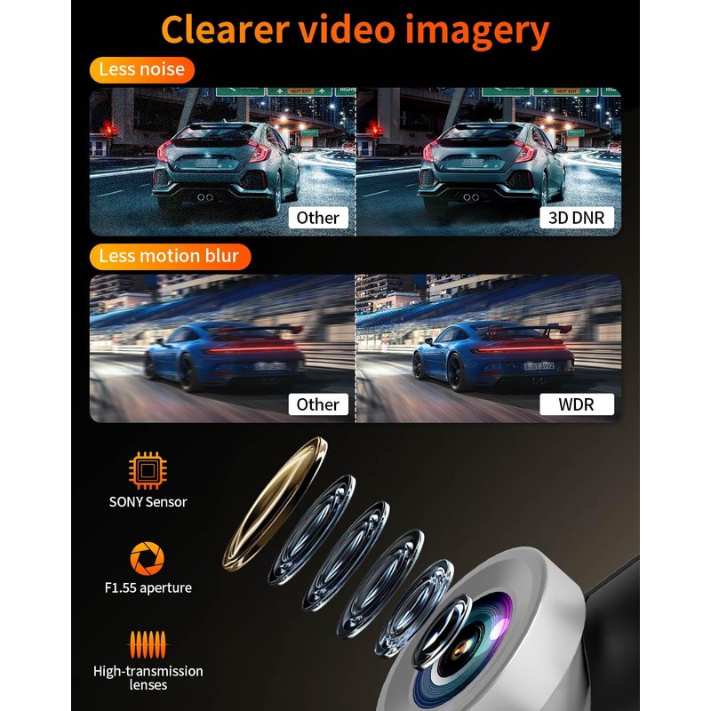 - 【Advanced Video Processing】The 4k dash cam front and rear supports HDR/WDR/3D DNR/high-intensity light suppression/backlight compensation/lens distortion correction/rain and fog correction, etc., ensuring excellent imaging effects in various environments.