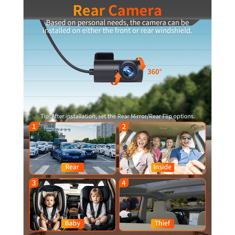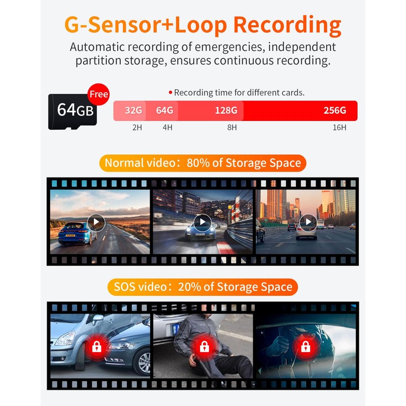 - 【Memory Card Failure Alert】When a memory card fails, the dash cam front and rear will emit a "DIDIDI" audio warning to remind the driver to check the storage card for issues promptly, preventing recording interruptions.