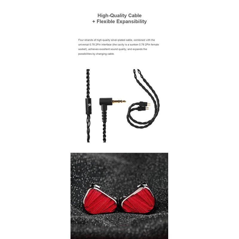 • ZERO:RED houses double dynamic driver configuration, with a diameter of 10mm and the other diameter of 7.8mm, the mature internal magnetic circuit structure co-worked with flexible polyurethane suspension composite LCP liquid crystal dome diaphragm, but it has total different inner configuration between standard ZERO, which makes RED offer a better objective indicators while meeting the needs of R&D.