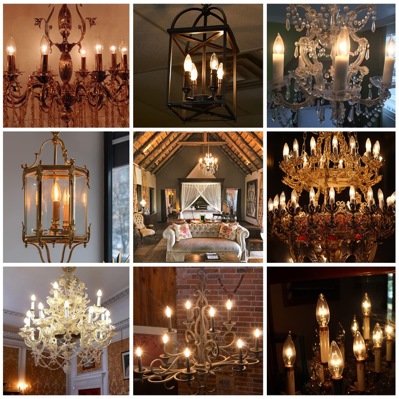 - 💡【Excellent Performance】Our C32 bulbs offer a high Color Rendering Index (CRI), which means they accurately represent colors and textures. They emit a soft and pleasant light that enhances the appearance of objects and provides a comfortable atmosphere.
