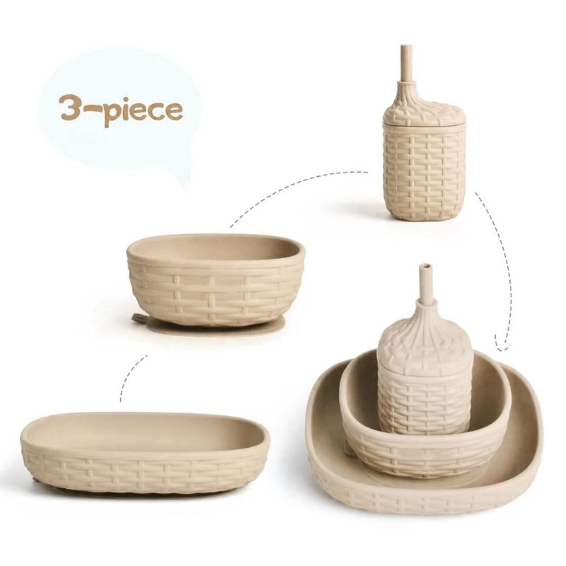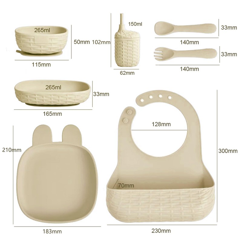 - 8 Pcs Silicone Baby Feeding Set:Fannobaby silicone baby feeding set includes a adjustable bibs with food catcher, a Cute plate with little ears and a bowl, a training straw, a sippy cup and a snack cup, a spoon and a fork;It covers basic cutlery for baby side foods to help your baby transition to self feeding.