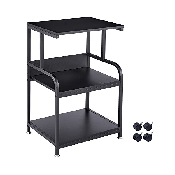 Fannova Printer Table with Wheels, 3 Tier Printer Stand with Storage Shelf for Home Office Organization, Rolling Cart Stand for Cricut Heat Press, Black