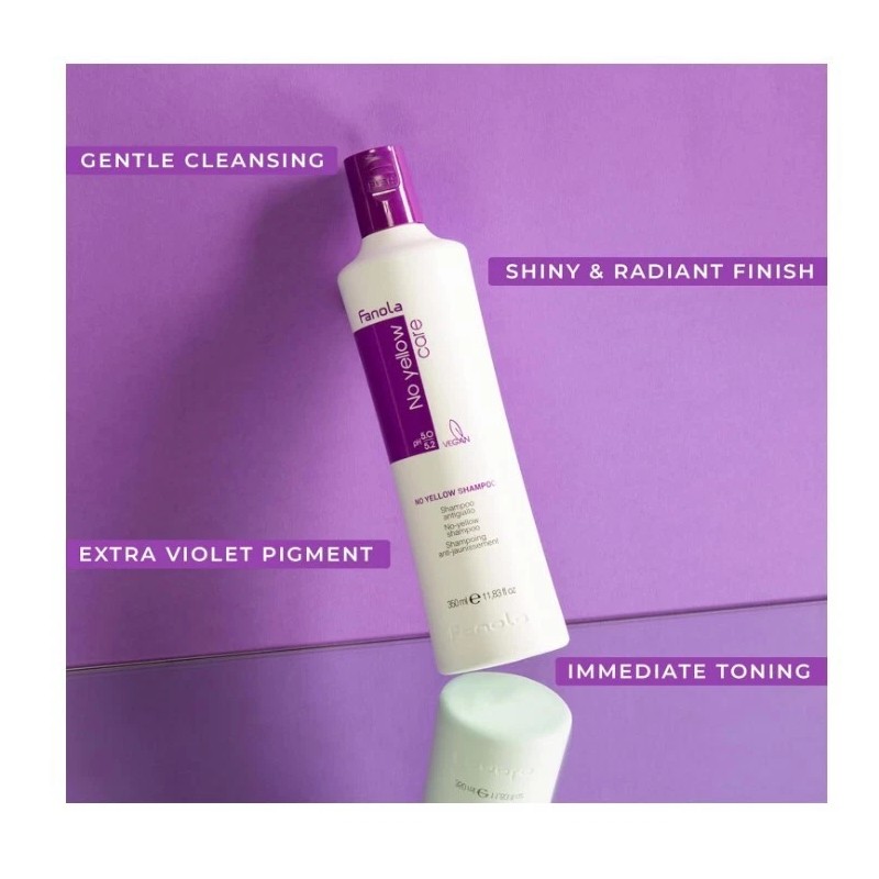 How to Use - Apply Fanola Anti-Yellow Shampoo to wet hair and massage. Leave on for 1 to 5 minutes, lather and rinse thoroughly. For best results, follow with No Yellow Purple Mask toner as a system to ensure your ideal blonde tone by leaving it with a cold tone and a soft, shiny, silky texture. *Pro Tip: Can be used to pre-tone bleached hair or on super lightened hair, as well as on clients wanting less yellow tones