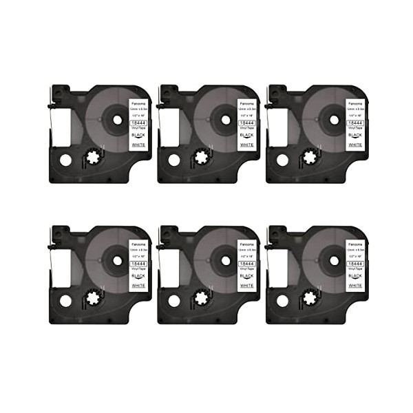 Fanooma Compatible 18444 Label Tape Replacement for DYMO Rhino Pro 5200 4200 6000 5000 Label Maker, Permanent Vinyl Industrial Tape Refills, Black Print on White, 1/2" x 18 Feet, 6-Pack