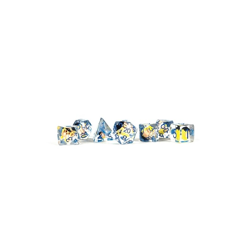 - Invincible Blood Damaged Resin Poly Dice Set- Calling all Invincible enthusiasts and collectors! Introducing the ultimate inclusion dice set to enhance your gaming sessions. Each inclusion dice comes with a bloodied and battle-damaged Mark Grayson!