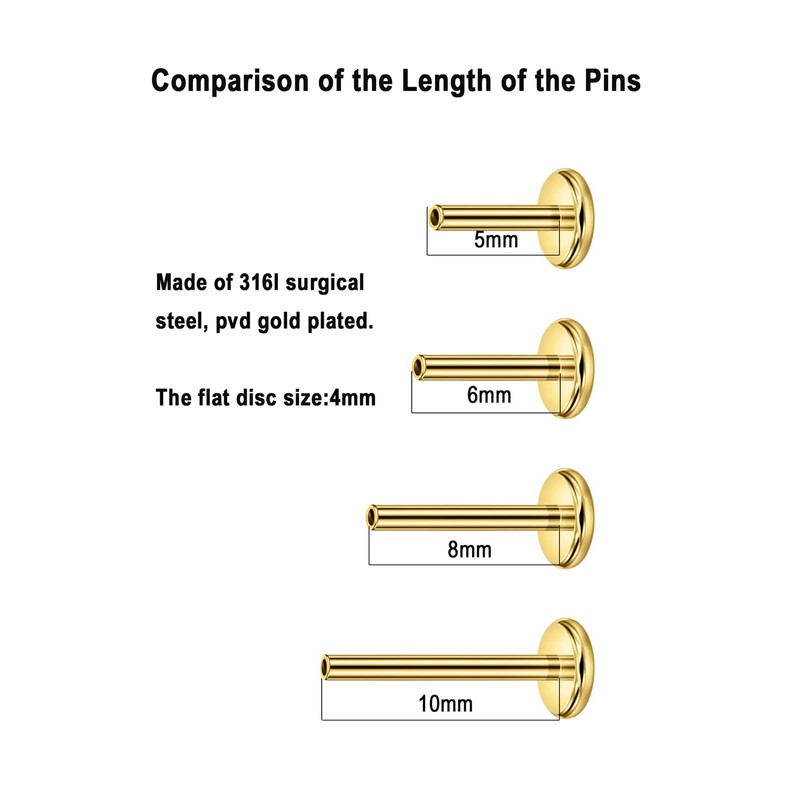 - Made of 316L surgical steel, pvd gold plated. 316L steel is the most basic metal used in body jewelry. It is the basic requirement of metal to be used in initial piercings and for healing. For most people this grade of steel works just fine.