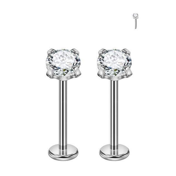 FANSING Threadless Nose Studs 4mm Zircon Titanium Cartilage Piercing Stud Earrings 20g 10mm Post
