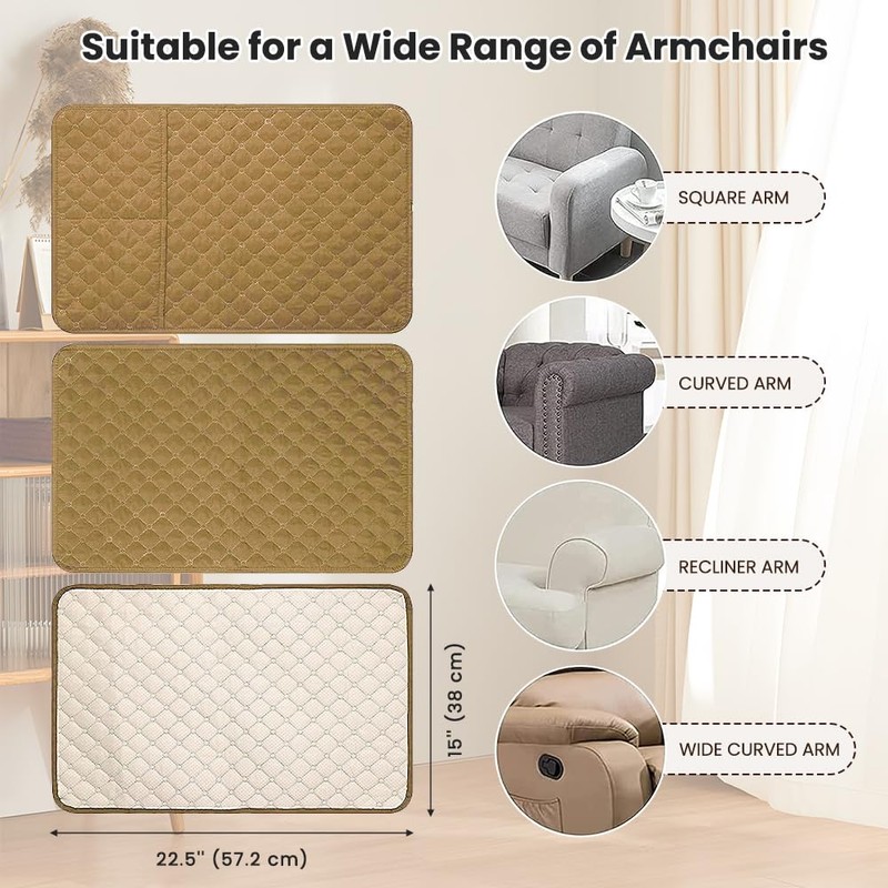 - 【Pocket Design】:Our chair arm covers has a unique designed pocket on the side. You can put your remote, glasses, magazines, newspaper, notepad, and other small items on the side pocket for convenient use. (High recommended for manual and electric reclining chair).