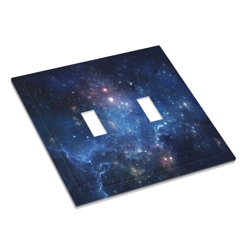 Fantastic Nebula Milky Way 2 Gang Double Toggle Wall Plate Cover Aerospace Starry Sky Universe Decirative Galaxy Cosmos Outer Space Electrical Faceplate Light Switch Plate for Bathroom Kitchen Home