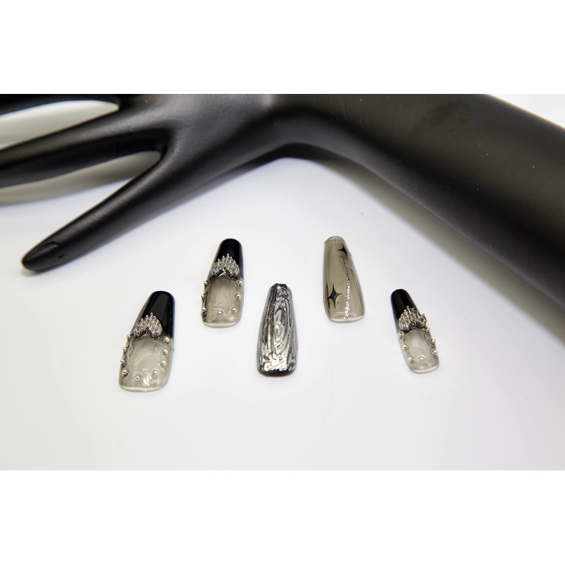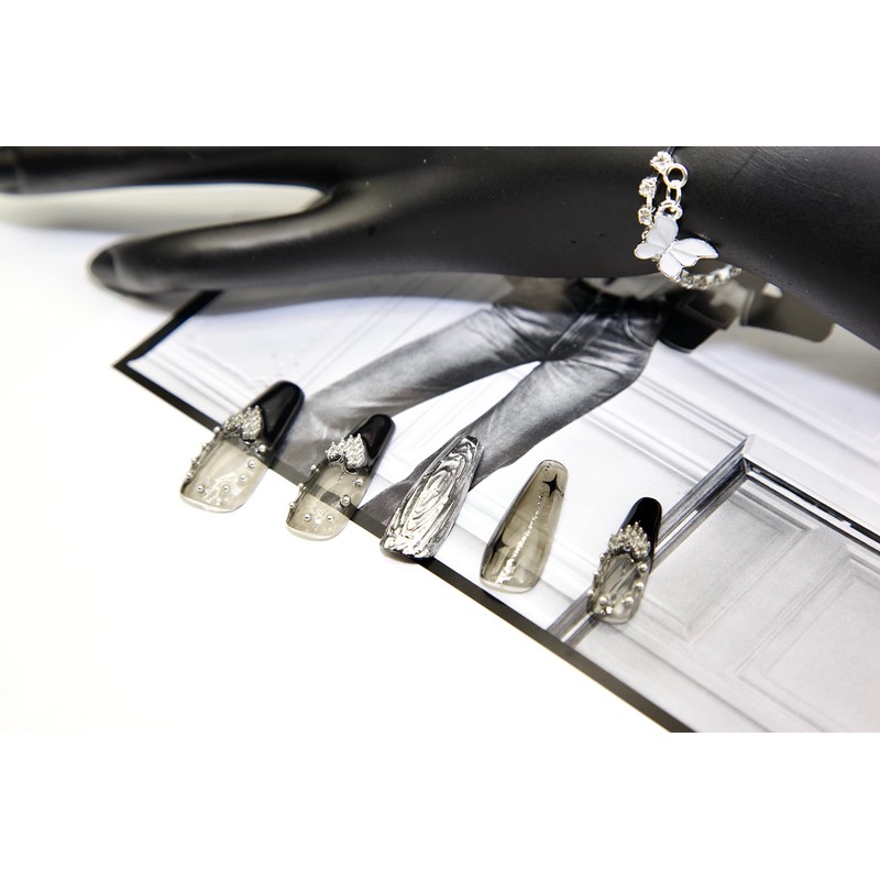 - 👍【Punk Style】This Press on nails is designed with punk style inspiration. The combination of black and silver is full of modernity and trendiness, which is very suitable for those who want to try new styles.