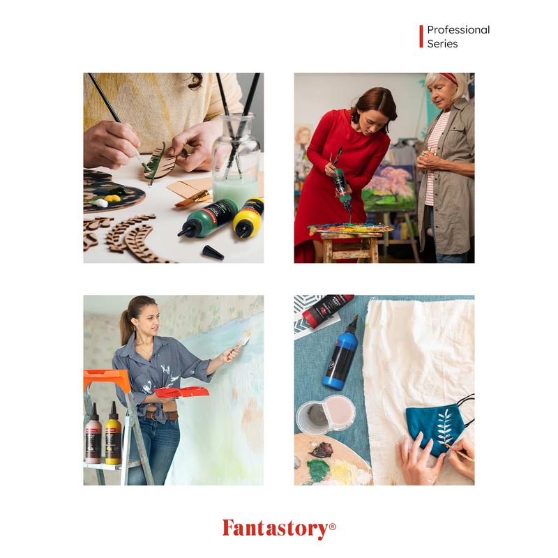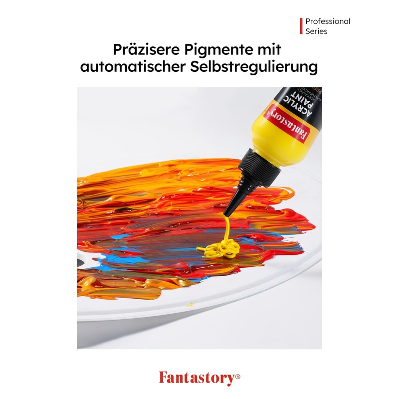 - High pigment density, strong coverage: Fantastory acrylic paint with 150 ml content provides an impressive pigment concentration of 1.2 g/cm³. Just one coat is enough to achieve intense, bright colours with excellent coverage - ideal for increasing efficiency. Especially suitable for professional artists, art teachers and ambitious hobby painters.