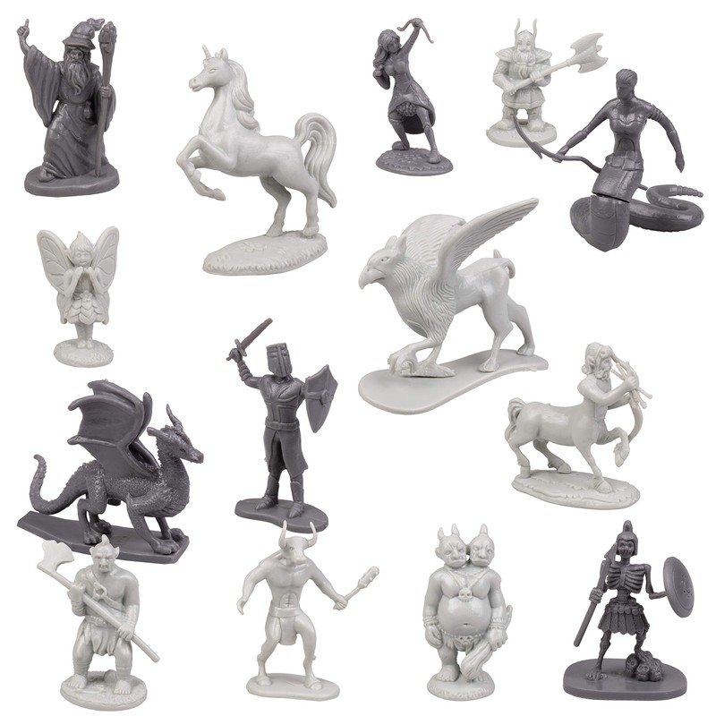 - Each monster comes in 2 colors (dark and light grey) to divide the set evenly for a fantasy battle of the ages
