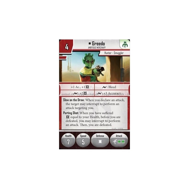 - The Greedo Villain Pack is essential for any mercenary. As a bounty hunter on the Outer Rim, Greedo has long taken to survive through his skills and wits.