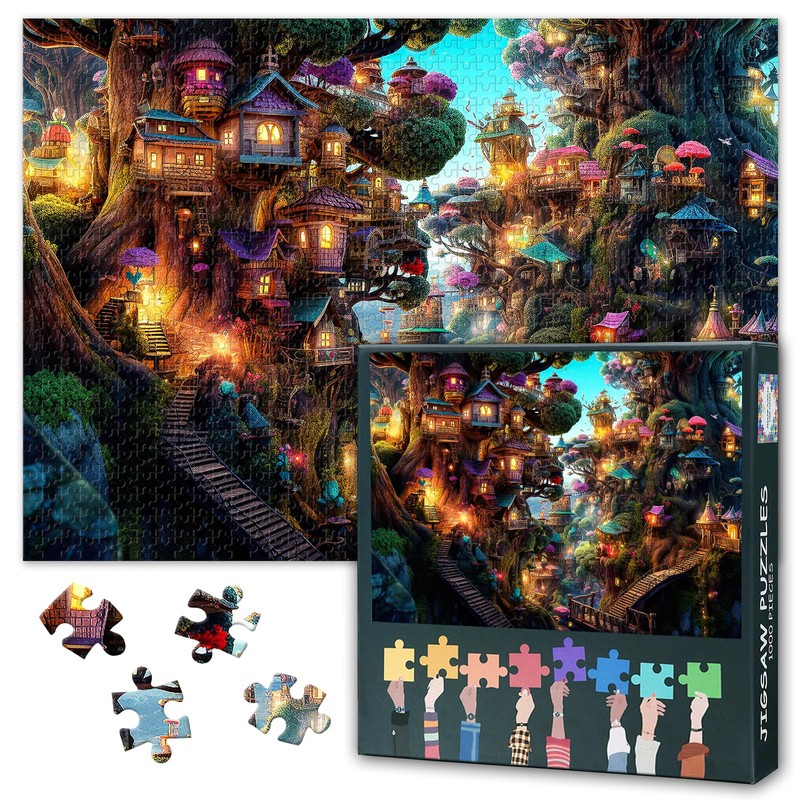 Fantasy Houses in The Forest Puzzles 1000 Stück Für Erwachsene Baumhaus Puzzle Für Erwachsene Wald Puzzles Für Heimdekoration Puzzle Geschenke Für Familie Freunde 70cmx50cm
