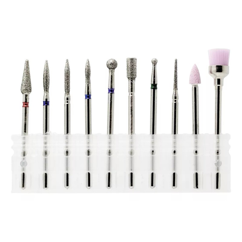 Set de 10 puntas para drill pulidor de uñas para manicure ruso, te permitirán lograr una limpieza más profunda en el área de cutícula.