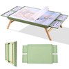 - The table extends to 12.2" in height when fully assembled, yet collapses to just 2.35" tabletop height for space-saving storage.Its foldable legs allow it to be placed on other surfaces/tables, offering adjustable height and expanded workspace while maintaining portability. Weighing only 13.2 lbs, it's lightweight and easy to carry.