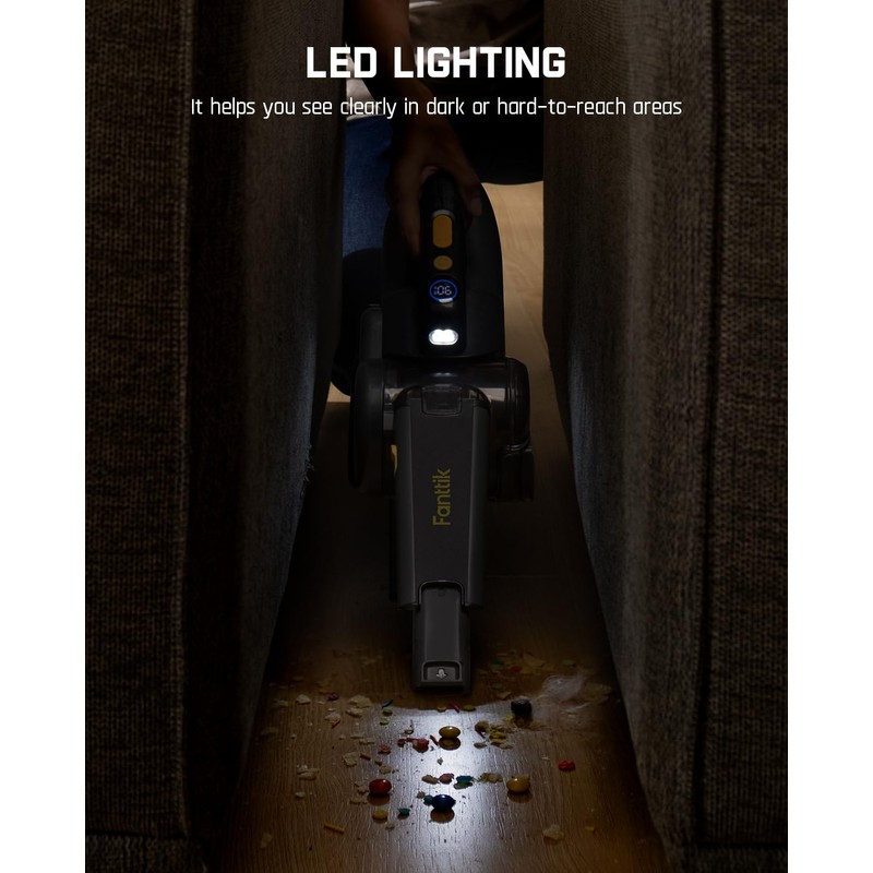 • Smart Display & LED Lighting: The vacuum features a smart display that provides real-time updates on the battery level and mode status. It also includes a dust full indicator, which alerts you when it's time to empty the dustbin for optimal performance. The built-in LED lighting helps you see into dark or hard-to-reach areas, revealing hidden dust and ensuring a more thorough clean