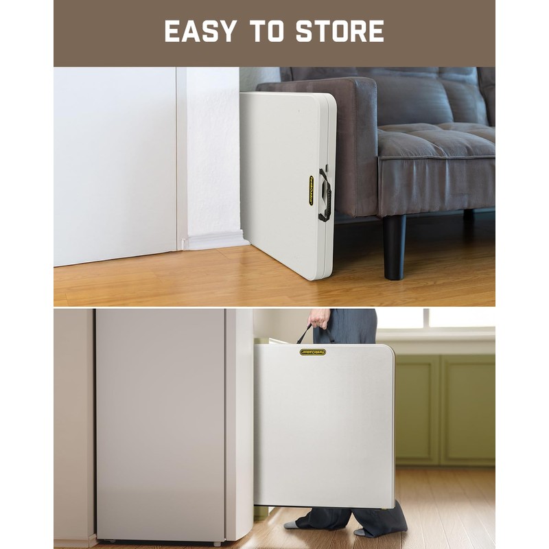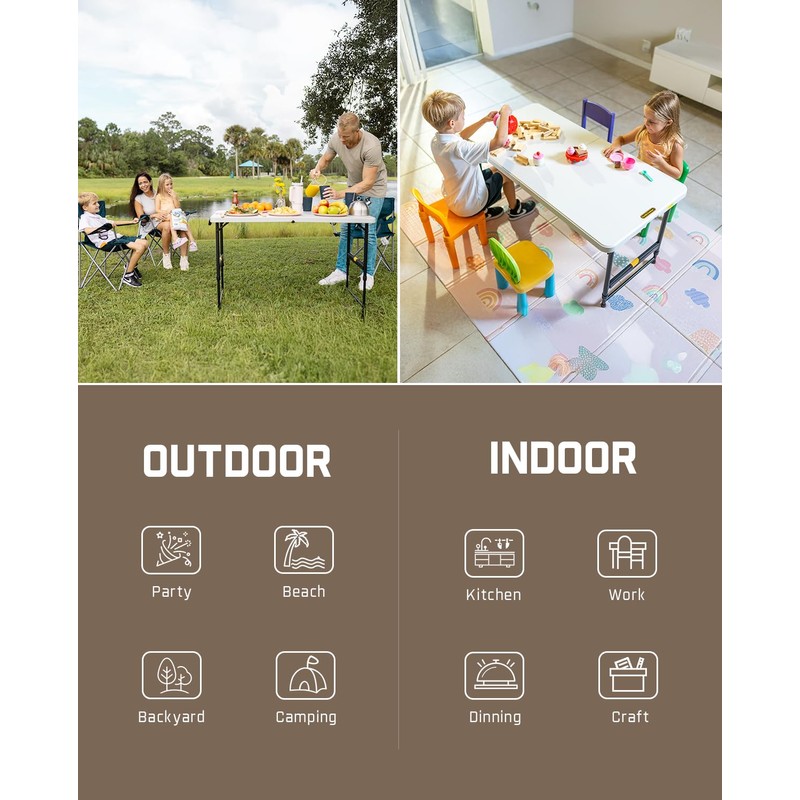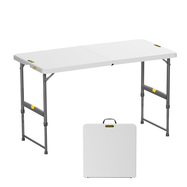FanttikOutdoor 4ft Portable Folding Table, One-Handed Height Adjustment, 4 Heights, Gravity Lock, Carry Handle, Indoor Outdoor Heavy Duty Fold-in-Half Utility Table, Party, 1 Pack, White Zeta X4 Pro