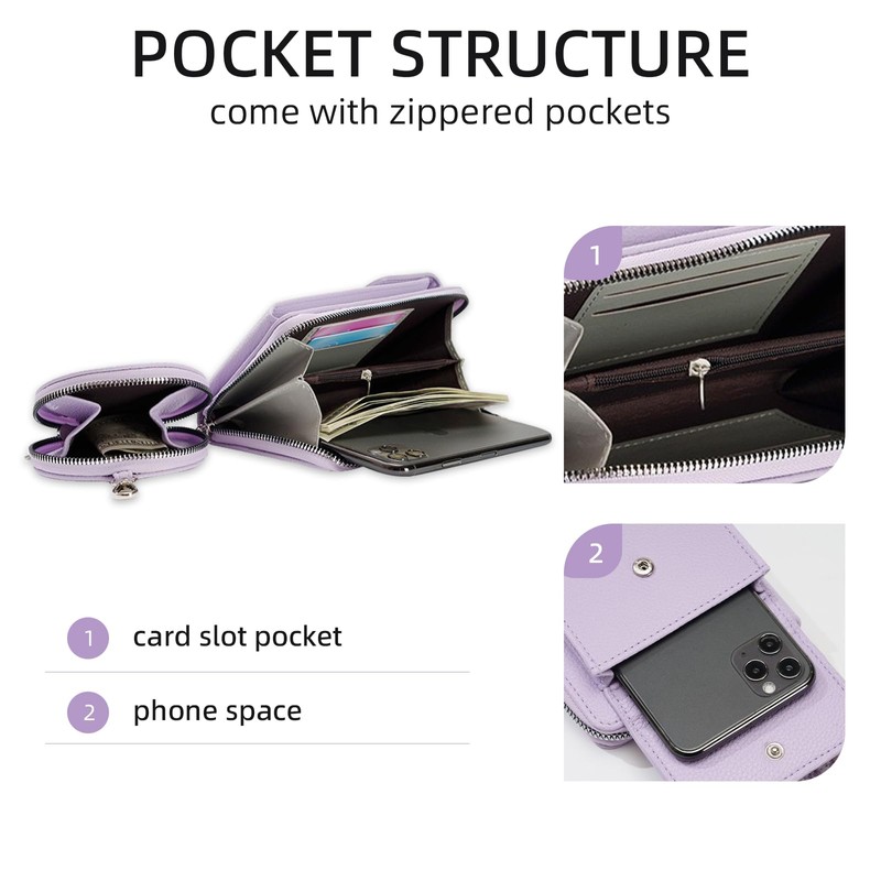 Fantysancket Small Crossbody Bags for women Trendy Leather Phone Wallet Purses Handbag with adjustable strap, Purple