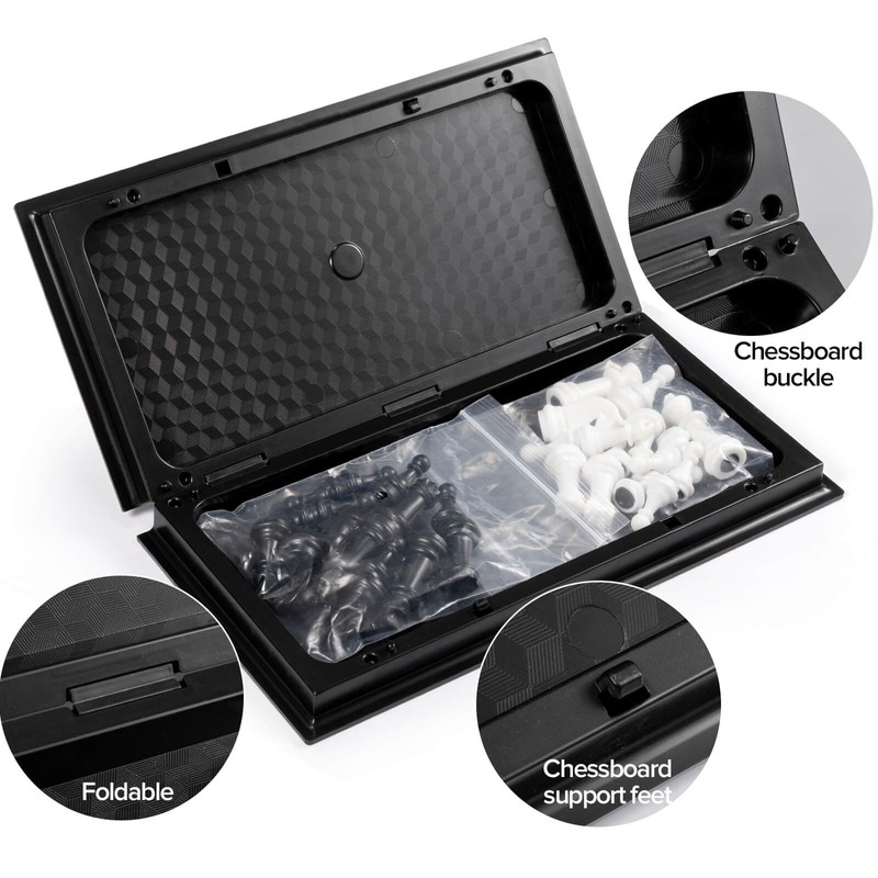 - Easy to store: there are buckles inside the chess board that keep it tightly closed, so you don't have to worry about it opening in your backpack.The folded chess board can be used as a storage box for chess pieces, saving a lot of space and preventing chess pieces from being lost.