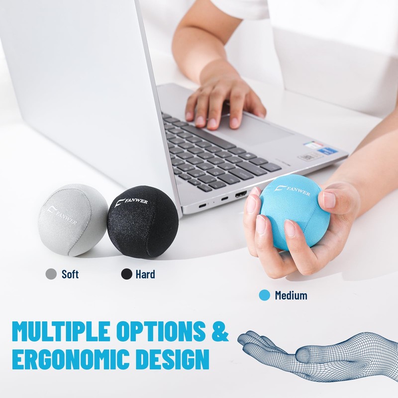 - Train scientifically and relieve stress with three balls of varying intensities perfect for finger training anytime, anywhere.