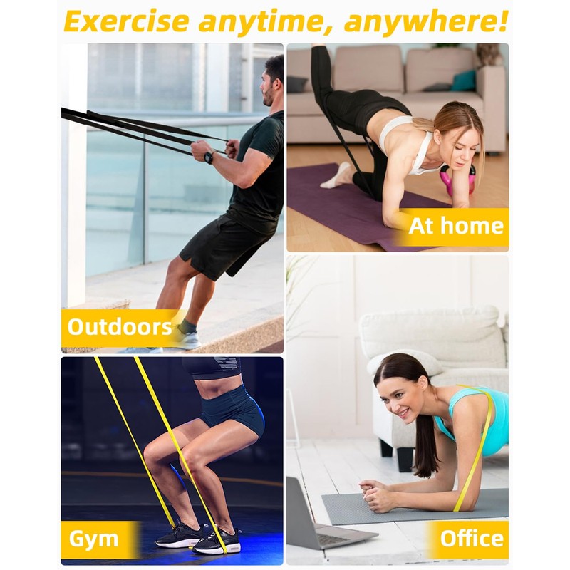 - Easy to carry: the fitness bands set are lightweight, foldable and take up little space. The resistance bands set is easy to carry and comes with a waterproof bag, so you can take it anywhere, whether at home, in the gym or on the go. You have the freedom to complete a full body workout anytime and anywhere
