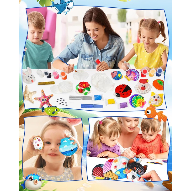FAOKZE Shell Painting Crafts, DIY Creative Gifts, Craft Sets Painting Sets for Children, Shell Colouring Craft Set, Children's Birthday Crafts, for Children Adults Gifts Painting Set (with 12 Colours)