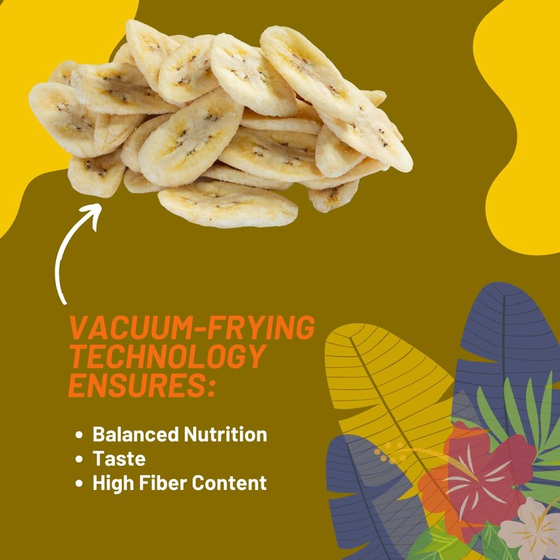 - Crisp tropical plantains – Green plantains are thin cut, lightly cooked and dried into airy chips that deliver a naturally sweet, banana like crunch.