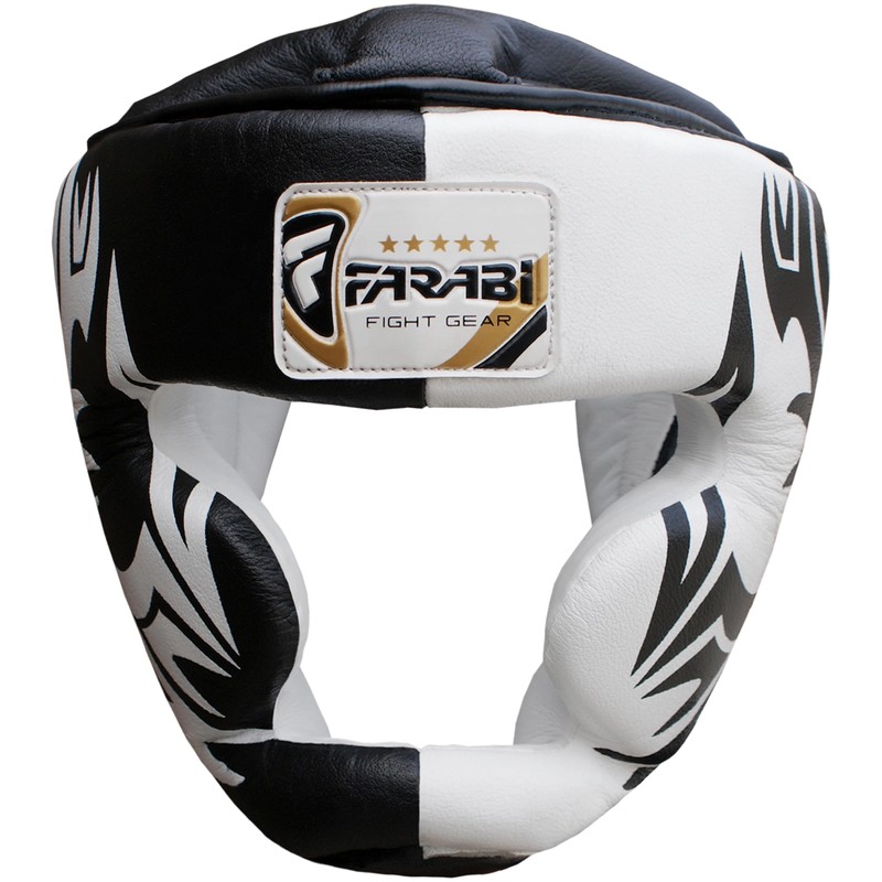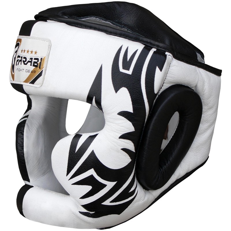 Farabi Sports Boxing Head Guard, Helmet prototector Gear Real Leather , White & Black, Medium