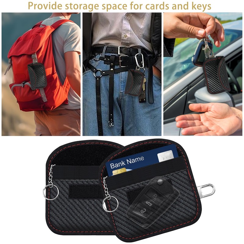 • Portable design: the internal key ring of the Faraday bag for remote key can be easily paired with the car key. The external hook allows the bag to be attached to trousers or bags without falling off.