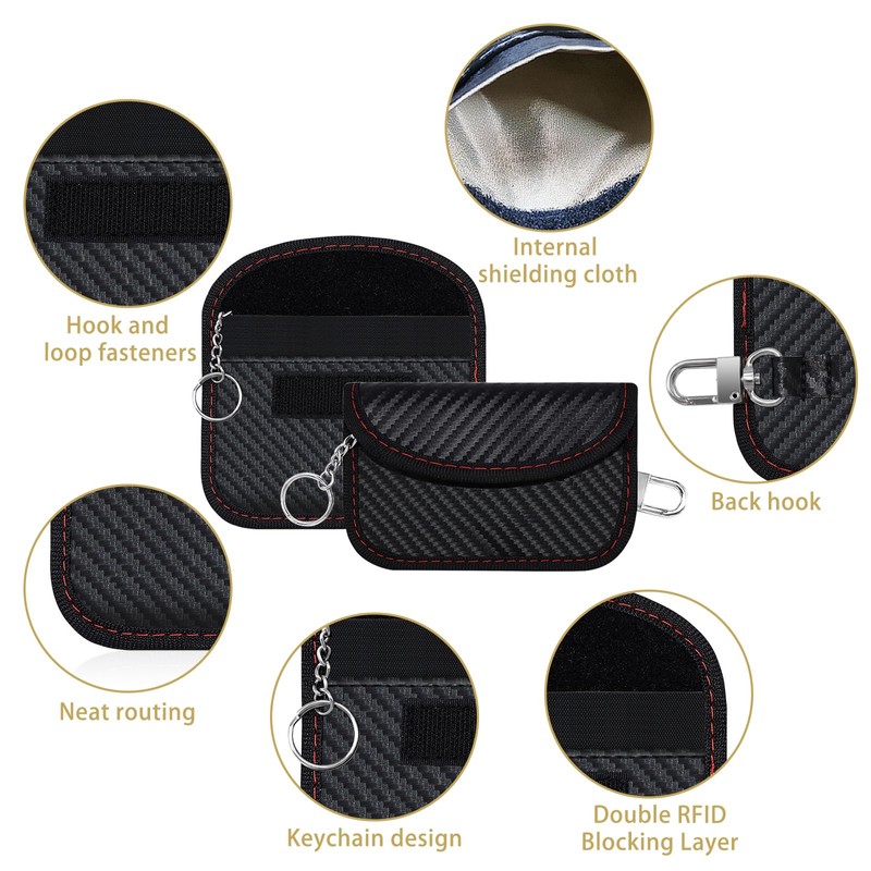 • Universal size: the set offers 2 pieces RFID remote key shielding key bag. The size of the car key bag is 11.5 x 7.5 cm and can be easily put in the pocket.
