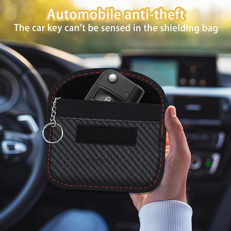 Pack of 2 Faraday bag, keyless go protection carbon fibre car key radiation protection bag RFID radio key blocker bag