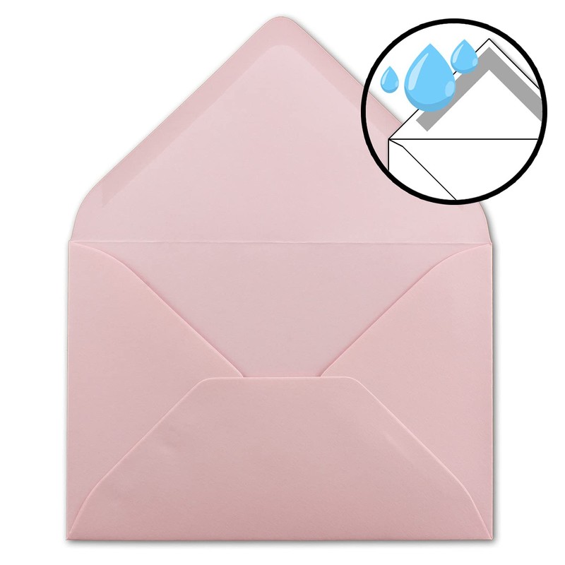 - Farbe: Rosa - Grammatur: 110 g/m² - Format: DIN C5 (220 x 154 mm) - Mit Nassklebung mit Gummierung, ohne Fenster