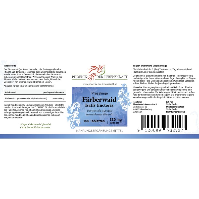 - PREMIUM QUALITY Our Färberwaid tablets are manufactured under strict quality standards to provide you with a first-class product. We use carefully selected plants to ensure purity and effectiveness.