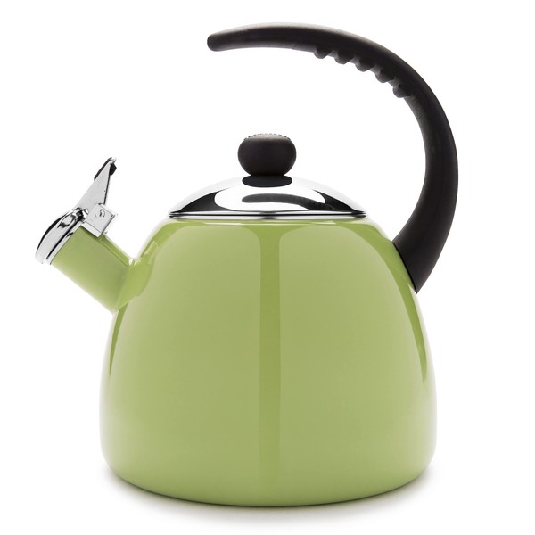 - CLASSIC WHISTLING TEA KETTLE. Farberware's Carbon steel Dome Kettle heats up to 3 quarts (12 cups) of water in just a few minutes, making it your go-to kitchen accessory for brewing coffee, tea and hot chocolate. A pleasant, familiar whistling noise will alert you when the water is at full boil and you can easily stop the sound by flipping up the whistling spout