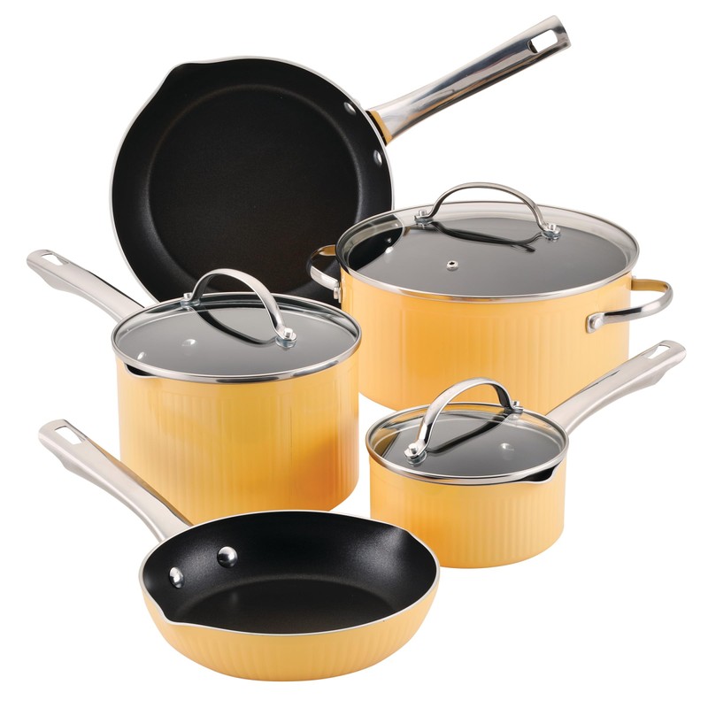 Farberware Style Nonstick Cookware Pots and Pans Set with Cooking Utensils, Dishwasher Safe, 10 Piece - Yellow