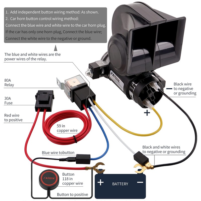 - Easy To Install: Our air horn kit is easy to install, you can install it manually with the harness package we distribute, wiring instructions with color diagrams are attached.
