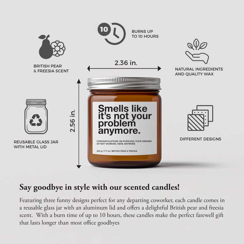 Farewell Gifts for Coworkers - Coworker Leaving Gifts for Women & Men - British Pear & Freesia Soy Wax Scented Candle (7.7 oz) - Funny Going Away Gift for Coworker - Goodbye Gifts (Not Your Problem)