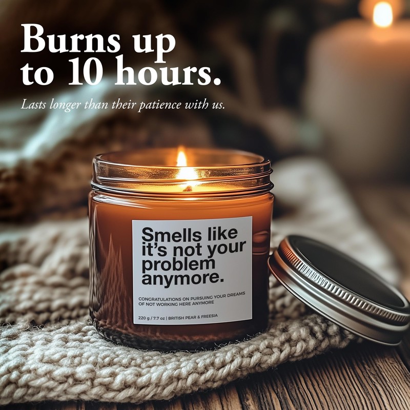 - ๐๐๐ป๐ป๐ ๐๐ผ๐๐ผ๐ฟ๐ธ๐ฒ๐ฟ ๐๐ฒ๐ฎ๐๐ถ๐ป๐ด ๐๐ถ๐ณ๐๐: Surprise your friends with our humorous and thoughtful scented candle. It's the perfect choice for coworkers leaving gifts for women or going away gifts for friends, acknowledging the emotions of professional transitions and new career chapters