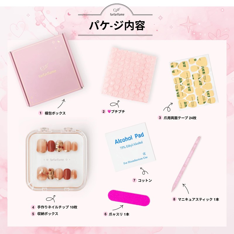 - Package Contents: Includes 10 nail tips, 24 double-sided nail tape, 1 nail remover stick, 1 nail file, and 1 nail polish stick!