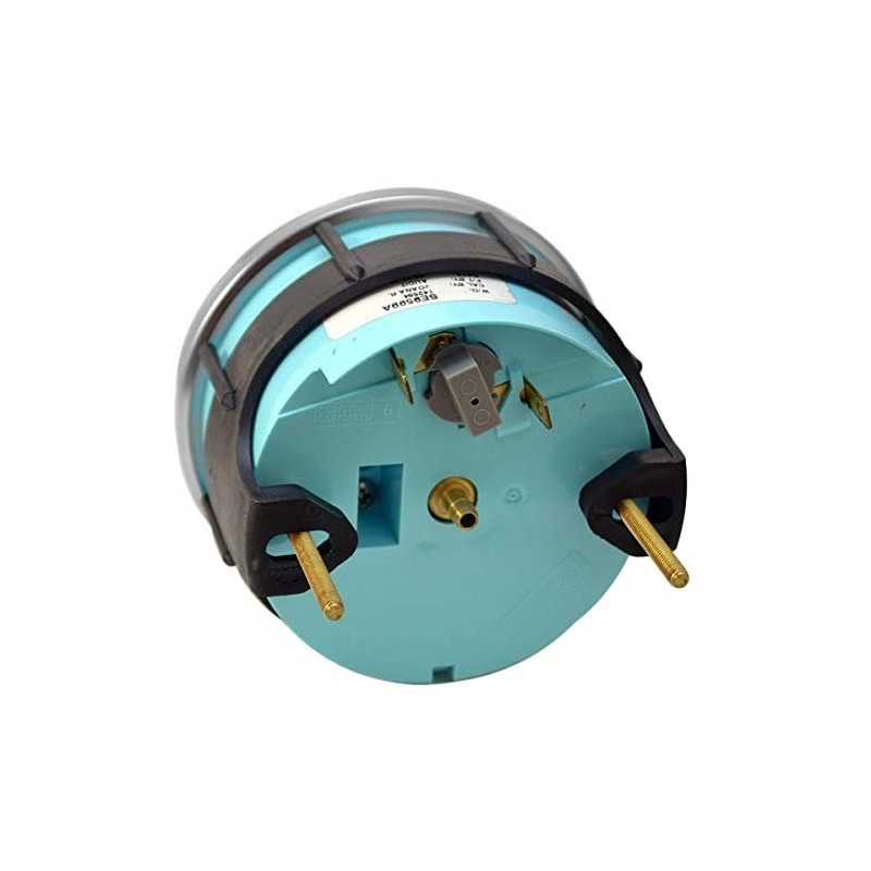 This clear halogen illuminated 65 MPH speedometer features a domed lens, silver colored bezel, silver colored face, white needle, and black and gold colored letters, numerals and accents. Measures approximately 3 3/4" Dia. across the face (including bezel), x 3 7/8" D overall. Requires an approximate 3 1/4" Dia. cutout. Has (1) pitot, (2) threaded bolts, and (2) single spade male connections. Mounting bracket included.