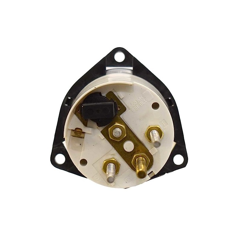 Measures approximately 1 3/4" Dia. across the lens x 3 3/4" D overall and requires a cutout of approximately 2" Dia. It has (1) single male spade and (3) pre-labeled threaded connections.