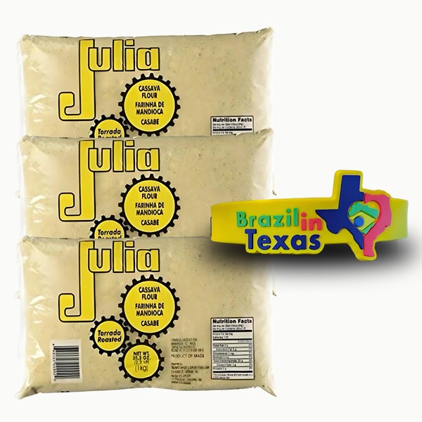 Farinha de Mandioca Brasileira Torrada Julia 1Kg | Pack of 3x1Kg | Brazilian Toasted Cassava Flour + Silicone Bracelet Souvenir | Brazil in Texas Bundle