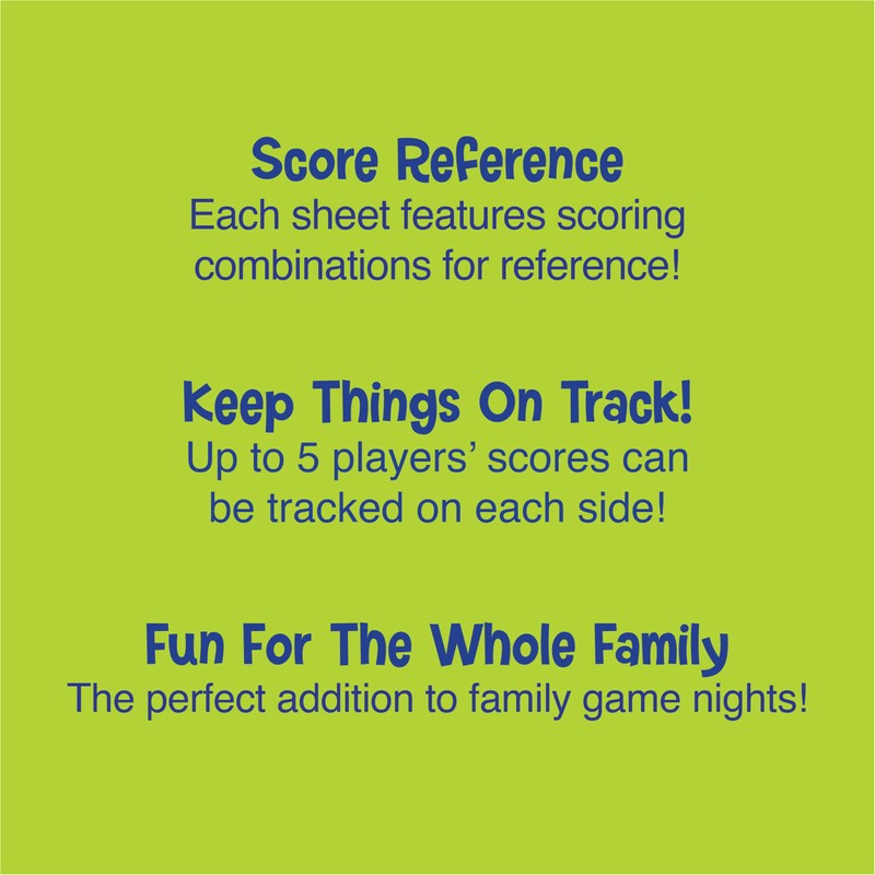 Keep the Farkle fun rolling with this pad of Farkle Score Sheets. Whether you play the Farkle in the famous burgundy box, the full-size Farkle dice cups or the exciting Farkle Frenzy, these score sheets will make playing and keeping score easier with the neat lines and columns. Each sheet also features the scoring combinations for reference and you can keep track of up to five players' scores on each side of the sheets.