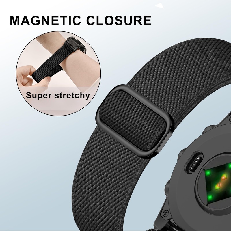 Farluya Elastic Nylon 20mm Watchband Compatible with Garmin Fenix 8 AMOLED 43mm,Soft Adjustable Sport Strap for Fenix 7S Pro/7S/6S Pro/6S/5S plus/Descent Mk2s/Mk3i 43mm/epix Pro 42mm Men Women