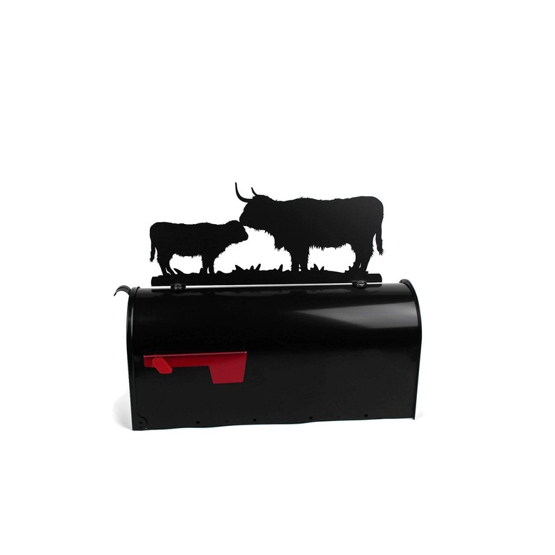Farm and Ranch Metal Mailbox Topper (Highland Cow and Calf, Matte Black)