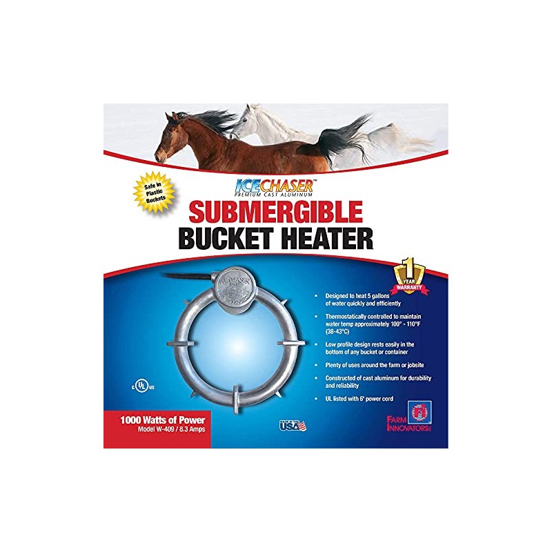 Farm Innovators Model W-409 Submergible Bucket Livestock Water 1000 Watt Heater with Attached Guard
