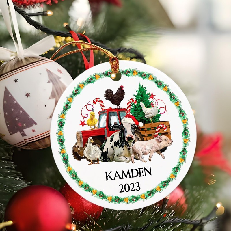 ♡ Farm Lover Ornament Gift, Customized Farmer Christmas 2024 Keepsake Ornament With Name, Farmer Keepsake Present For Xmas 2024, Animals In Farm Christmas Ornament, Custom Farmer Gift With Name & Year